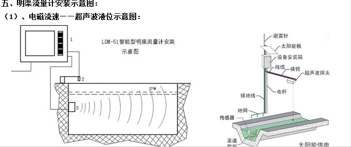 (1)、電磁流速——超聲波液位示意圖: